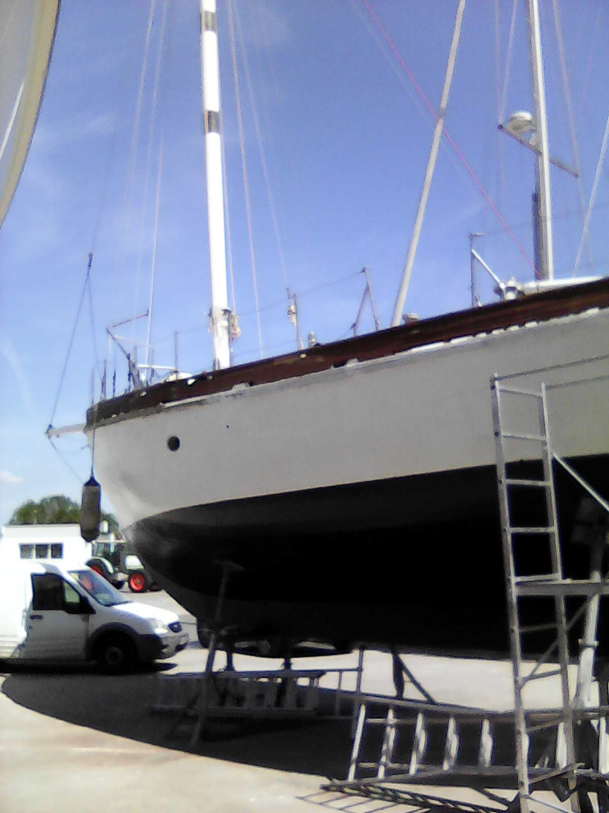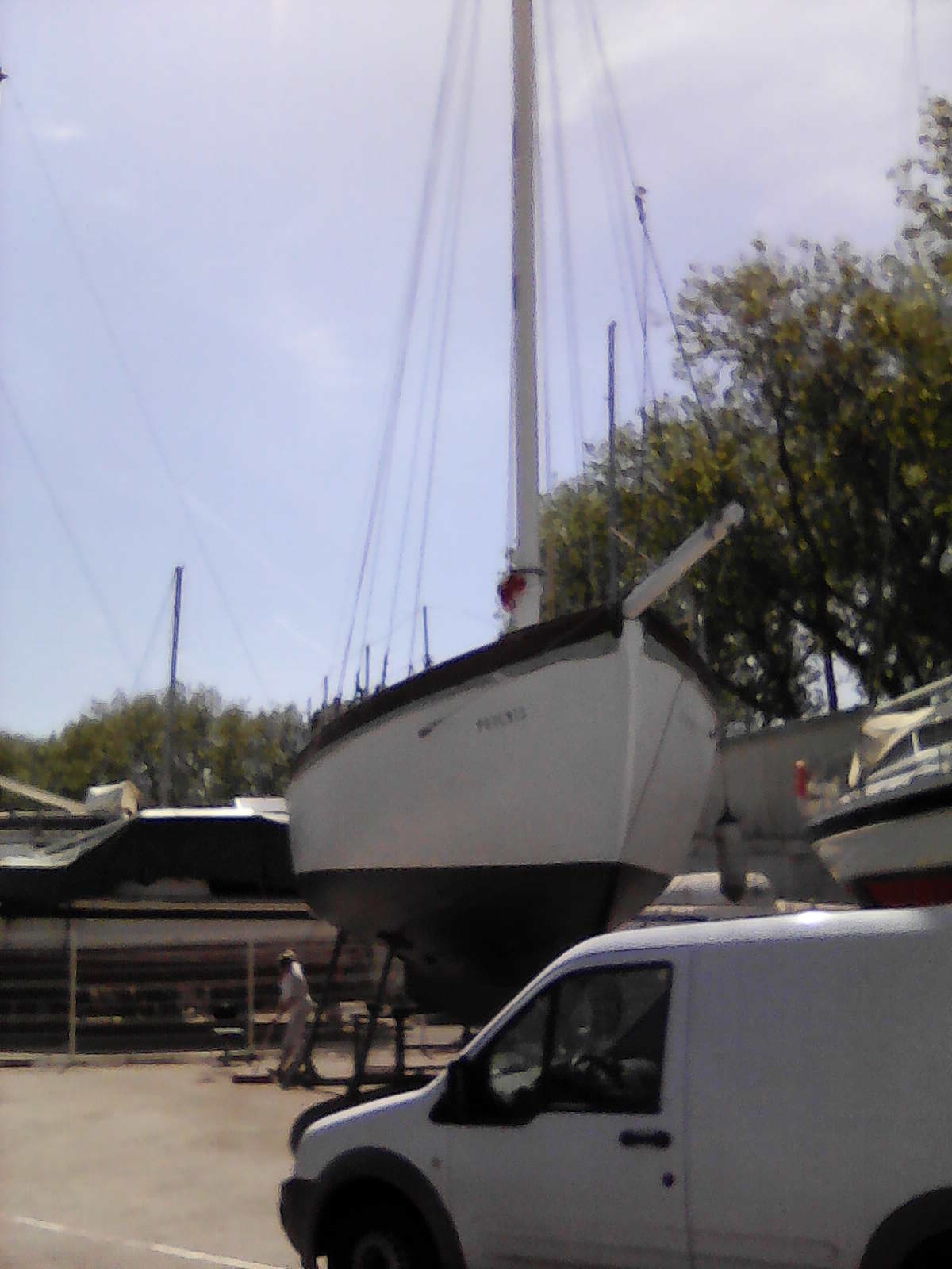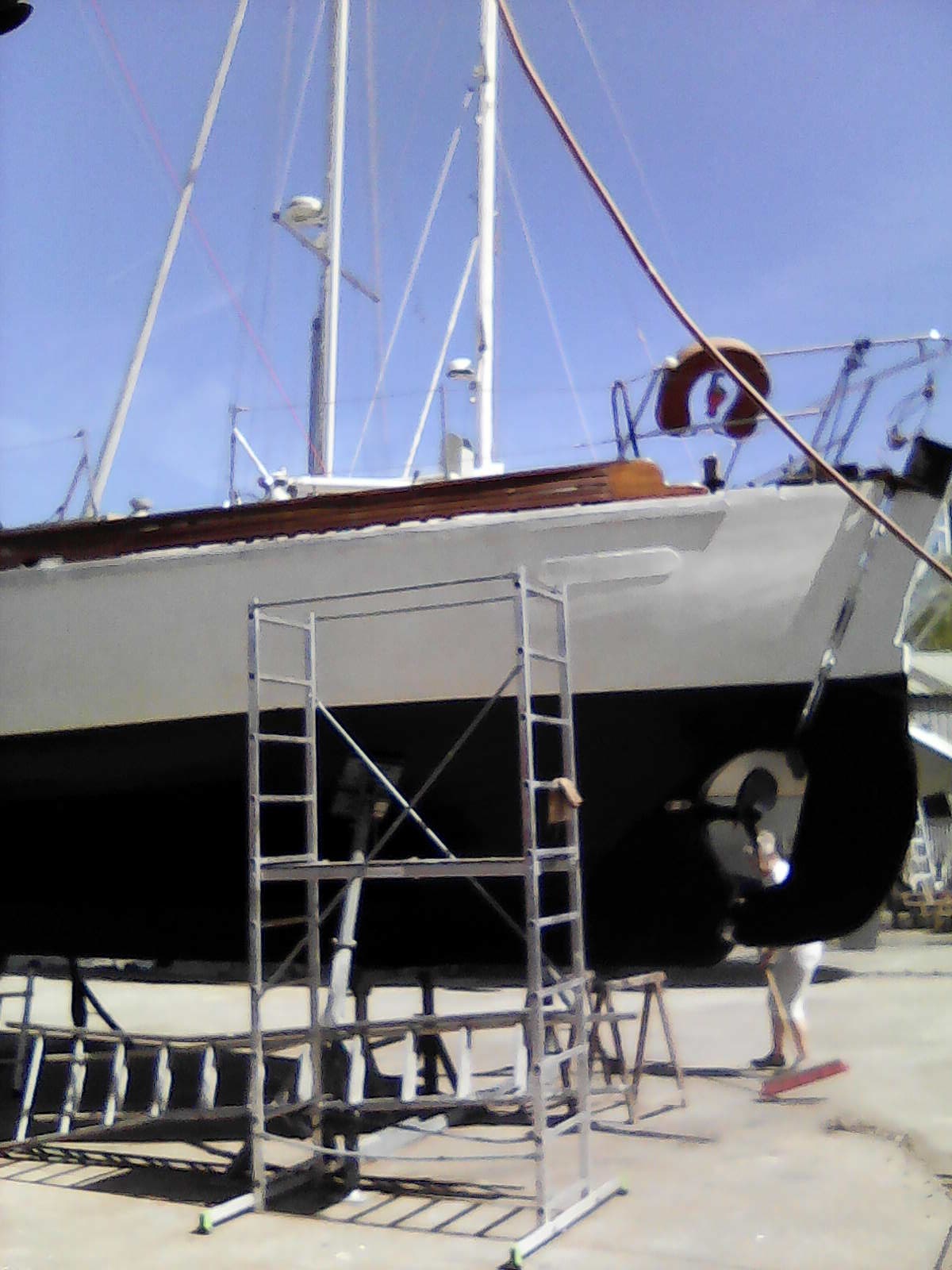 Voci quelques nouvelles. Nous l'avons sorti mardi pour un bon carénage et deux bordées (supérieures) à changer. 3 semaine sur la zone de travail et retour à l'eau. L'intérieur est presque fini, on vous montrera ça après......