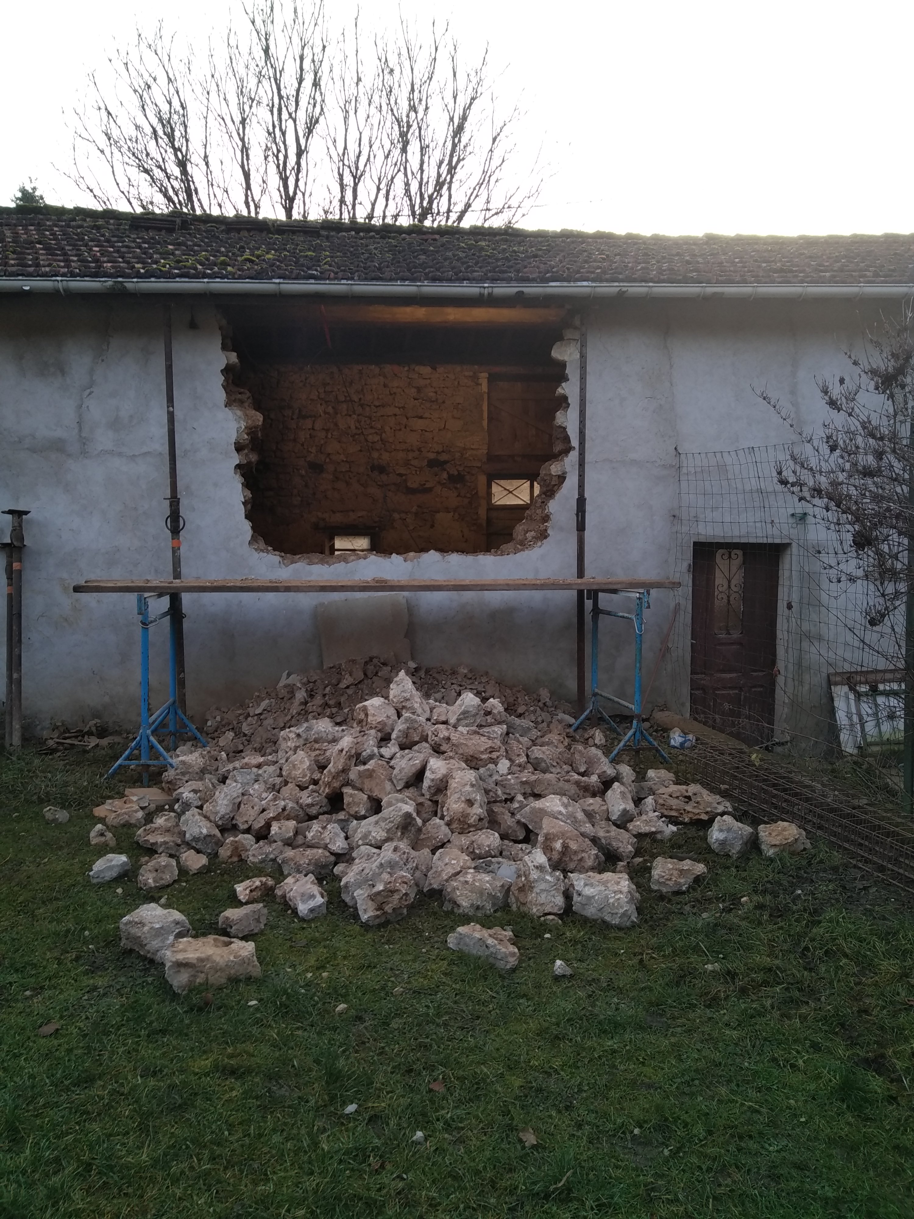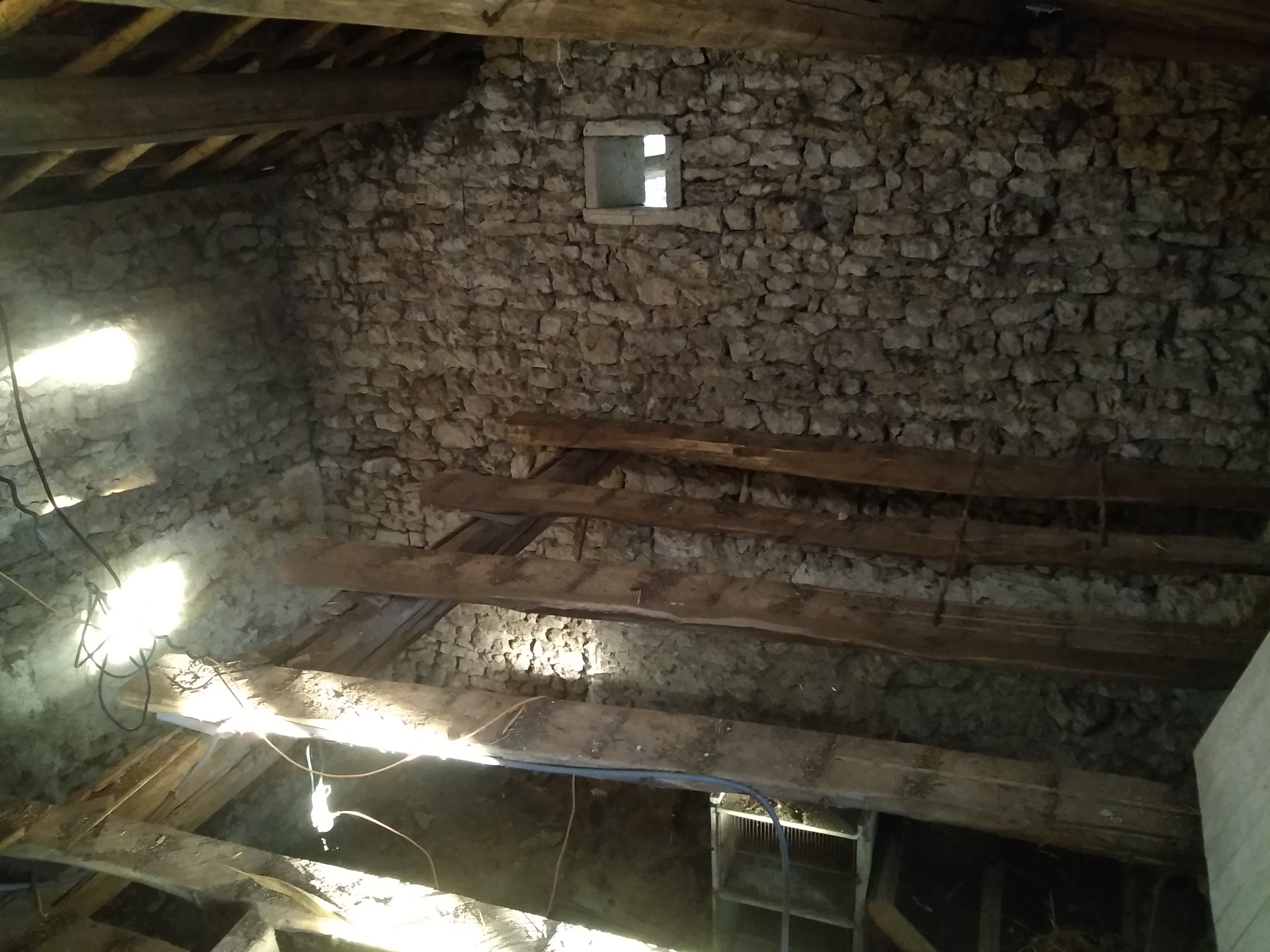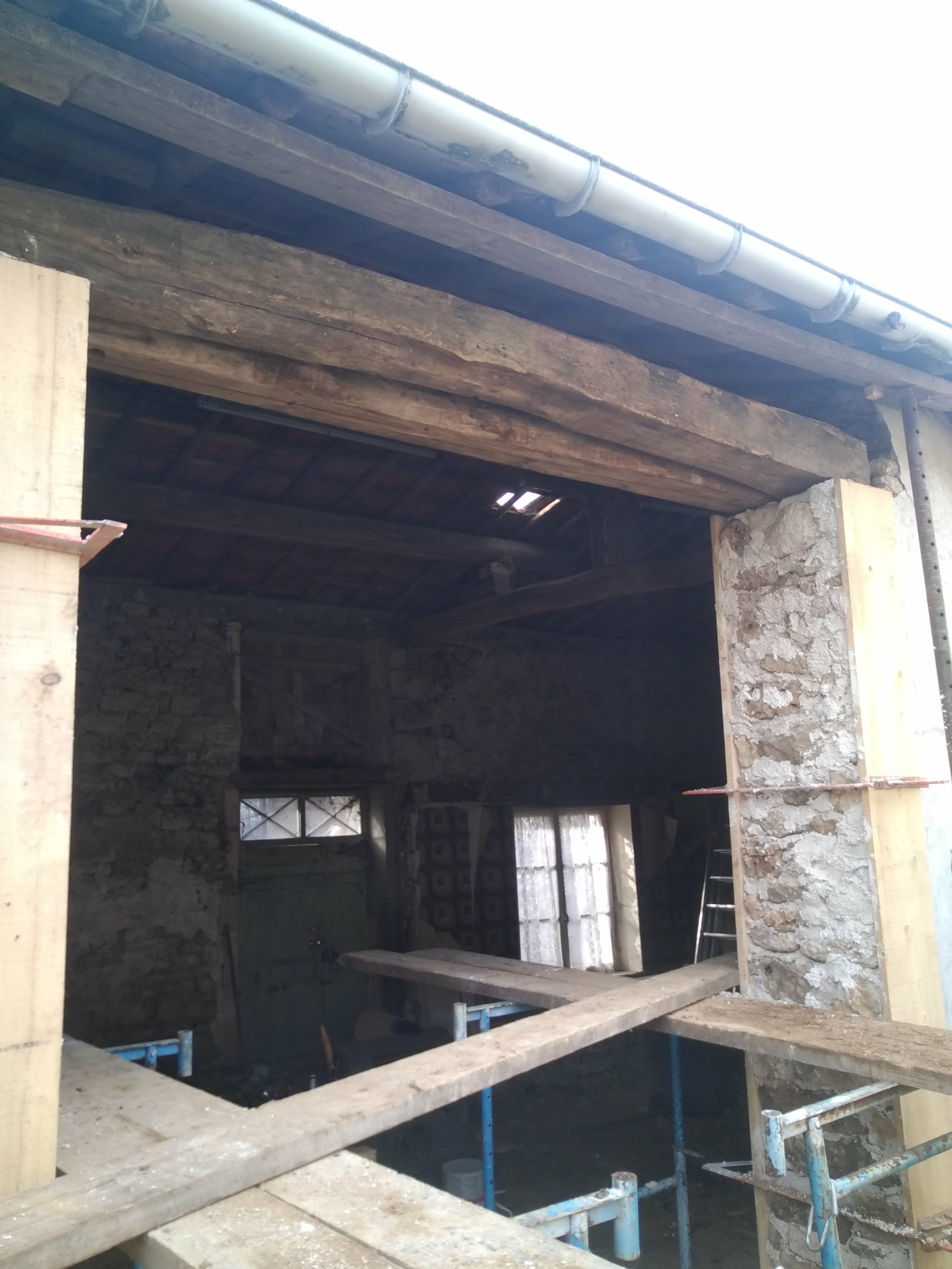 Démolition du grenier Démolition de cloison existante Ouverture d'une porte Porte fini et linteau bois ancien posé