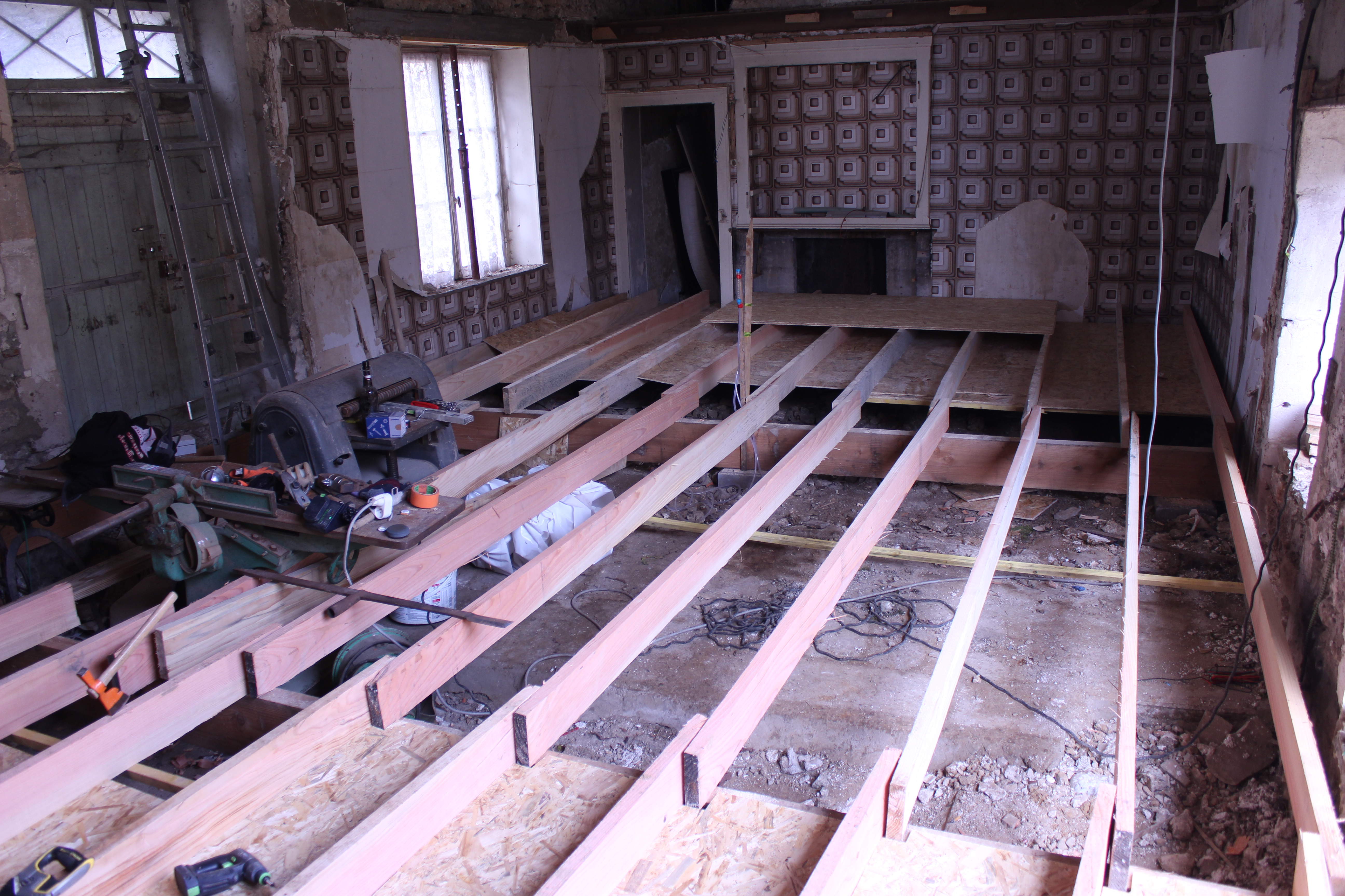ça avance et j'attaque aussi le solivage du plafond