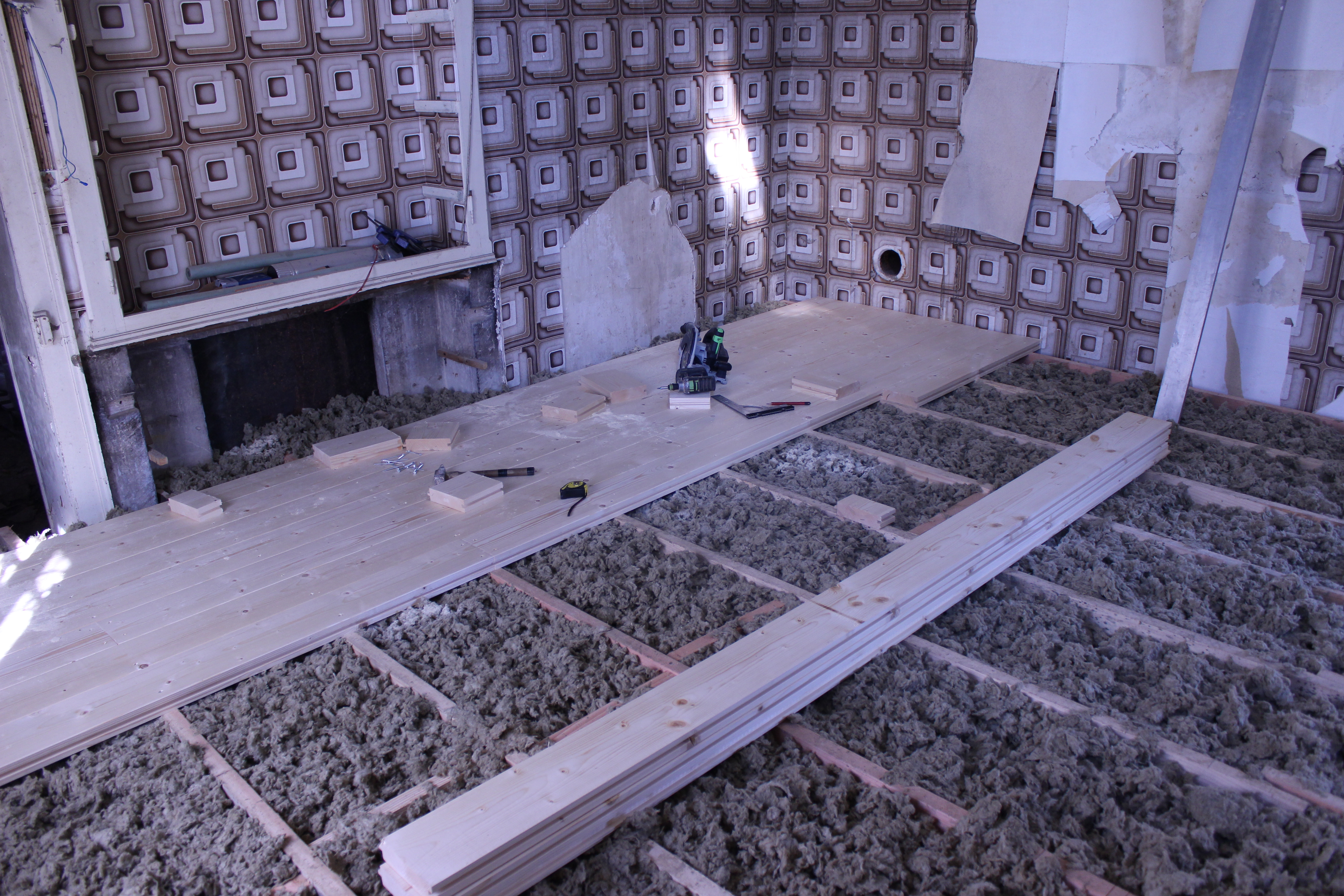 isolation du sol et début de la pose du planché 45mm