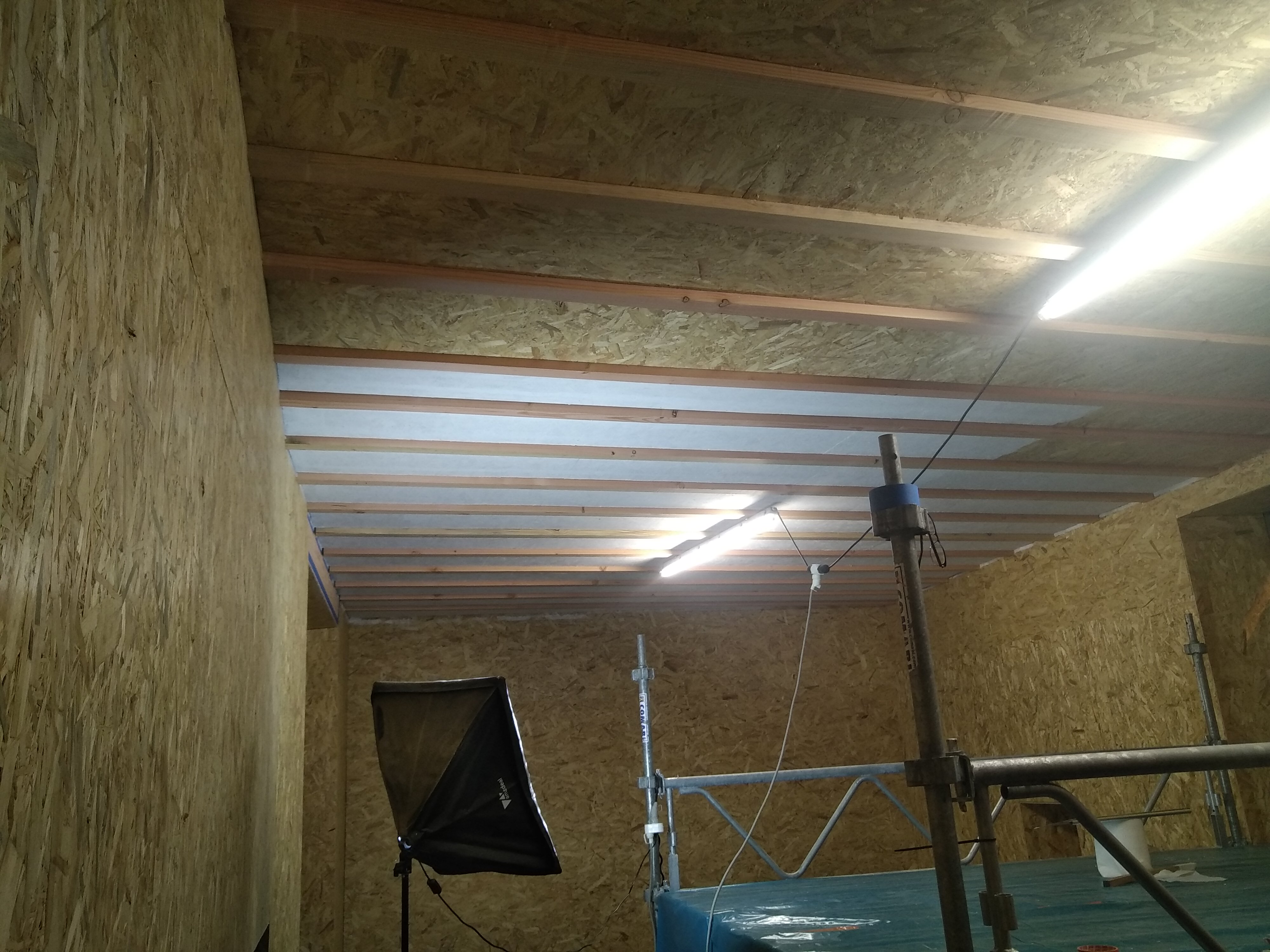 OSB mur fini, maintenant le plafond mais je me met un petit échafaudage roulant pour être a l'aise