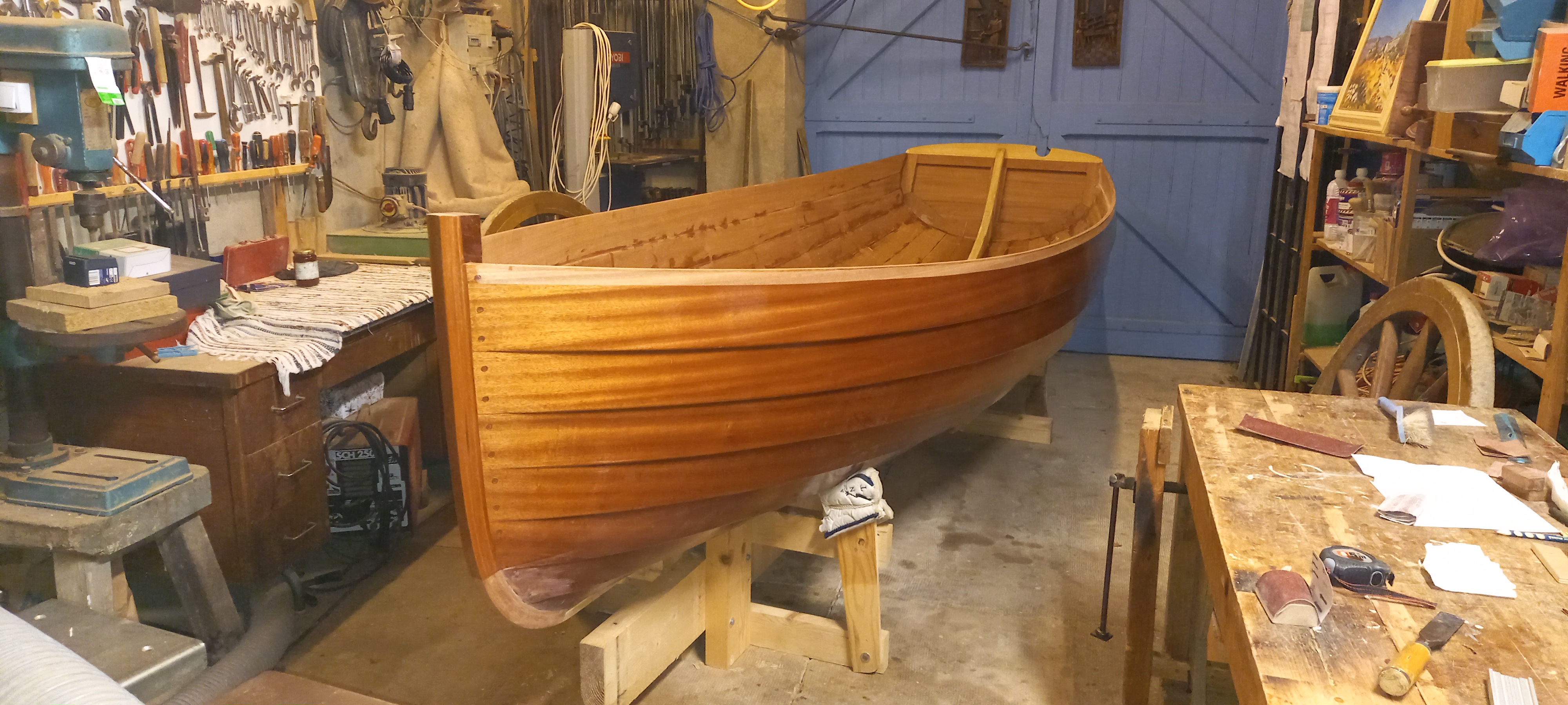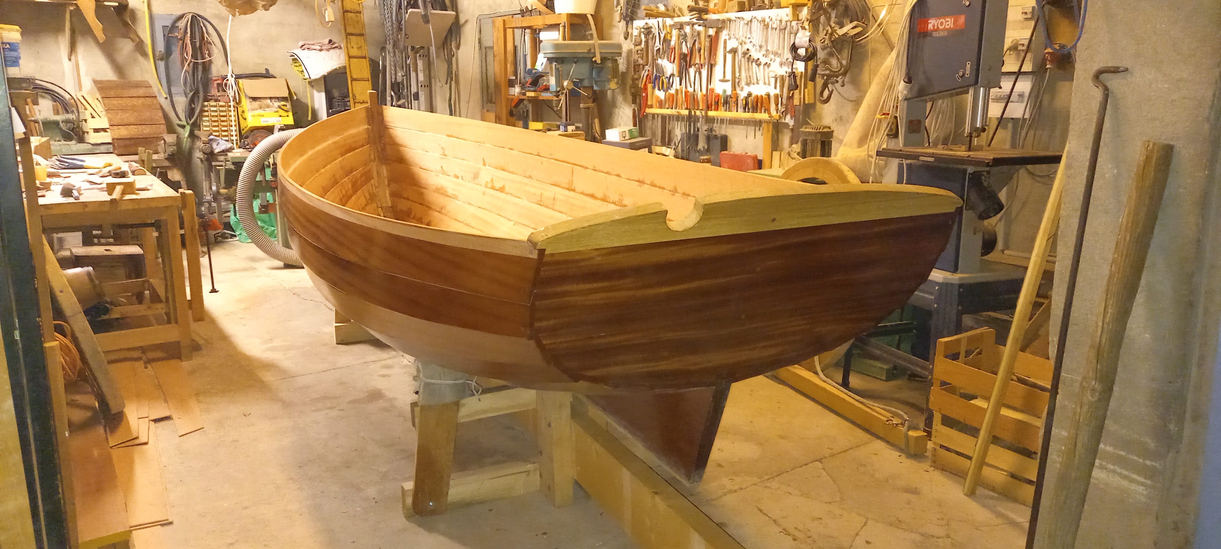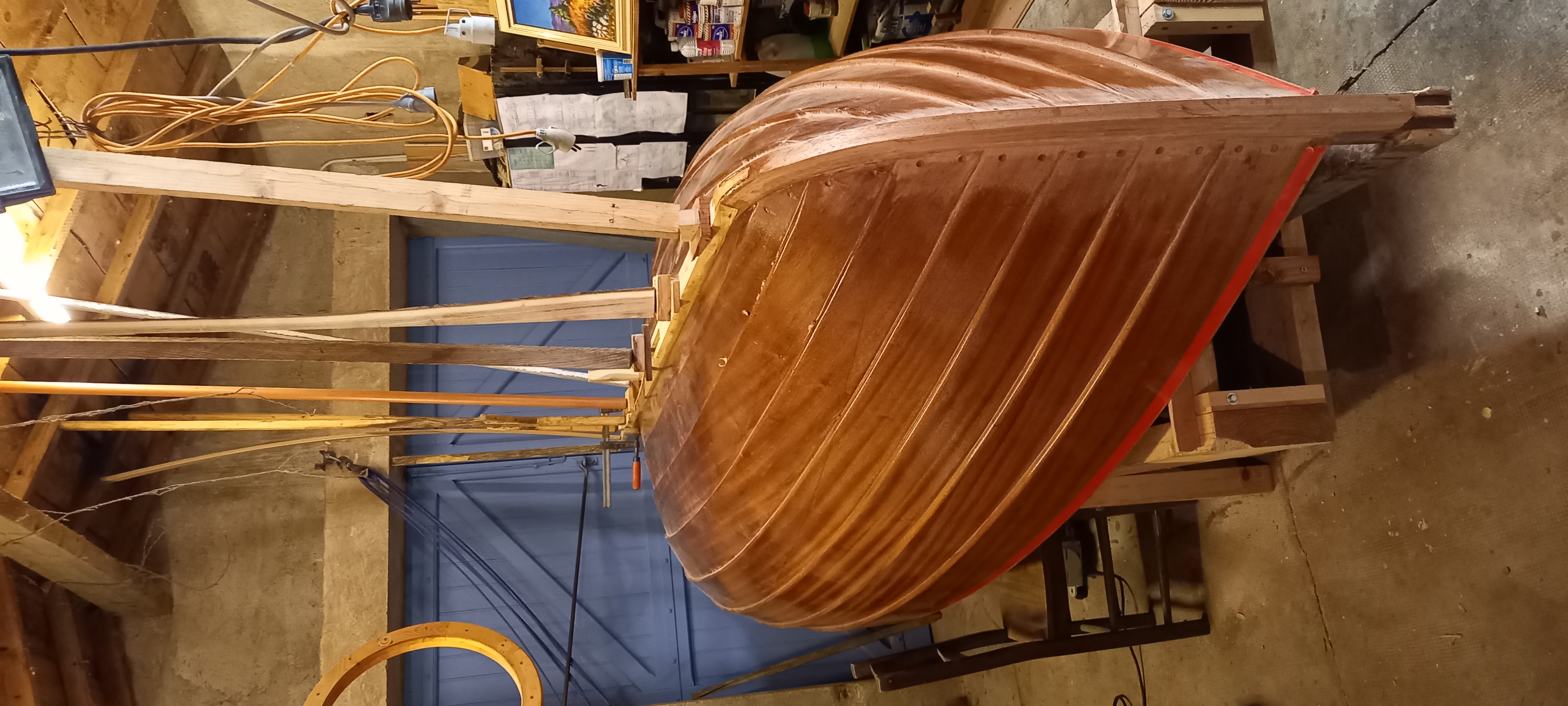 Les clins sont posés. Avant de façonner et fixer la fausse quille et la fausse étrave je vais faire une imprégnation époxy.
