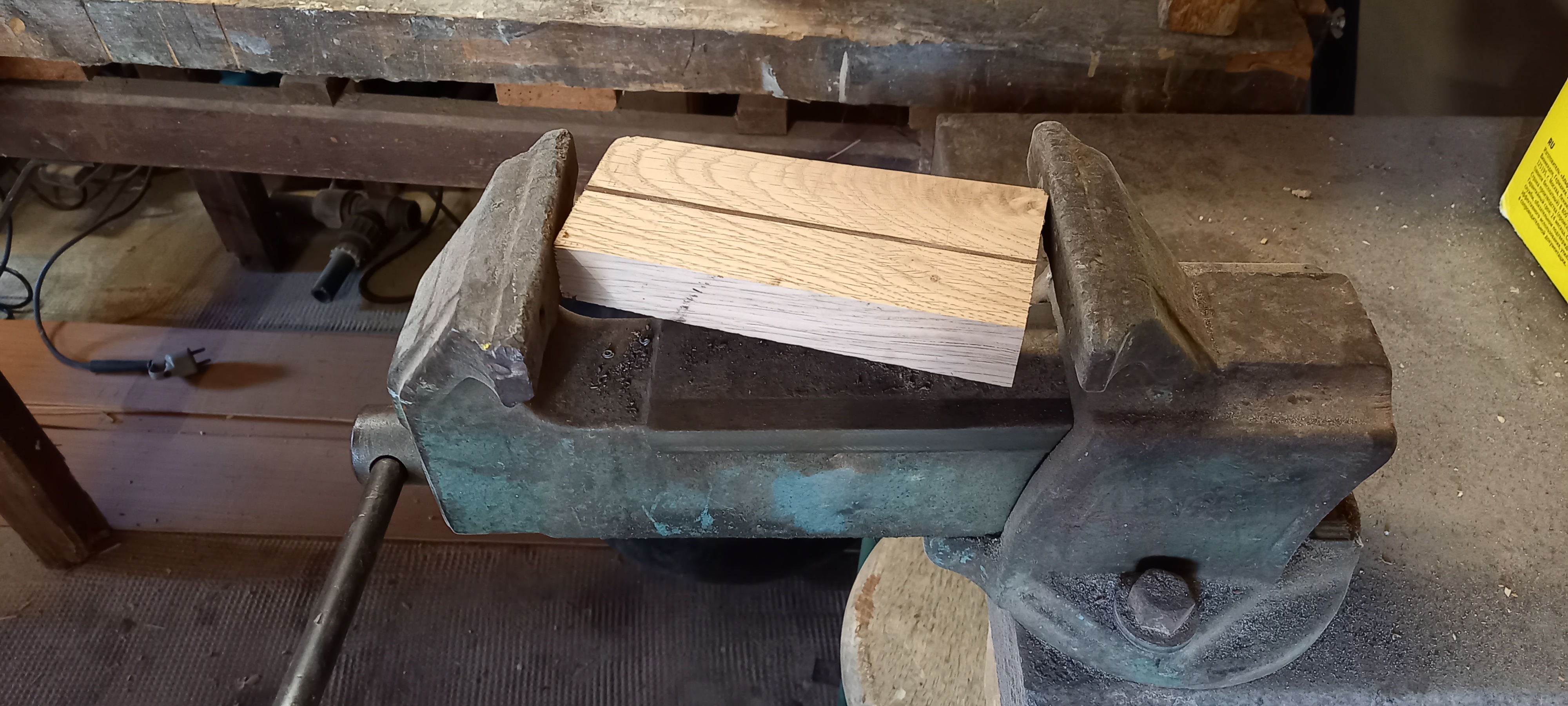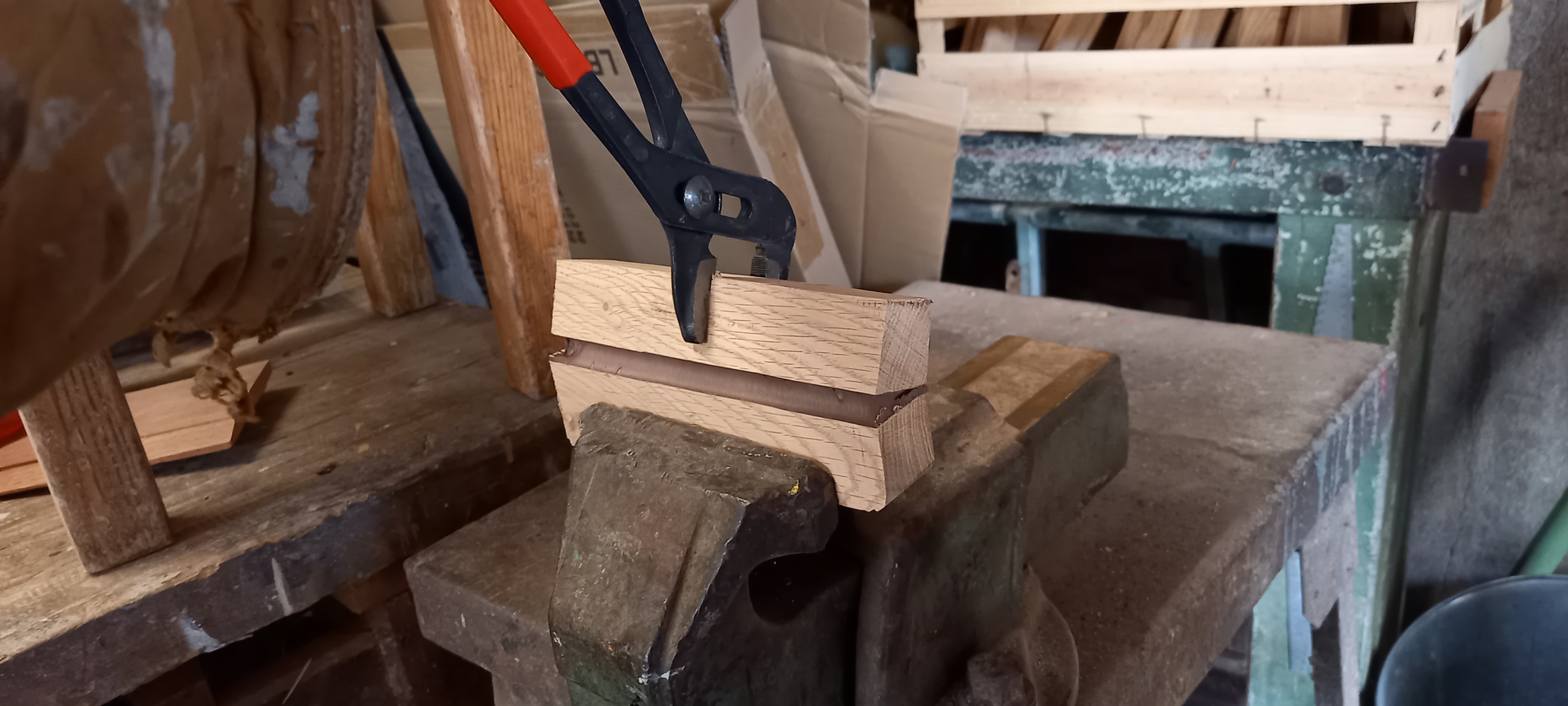 Pour compléter cette précaution j'ai vissé les varangues uniquement dans la quille et les membrures uniquement sur les trois clins du haut. Les liaisons avec les autres clins sont collées sur un lit de colle mastic Sikaflex 291i après l'expérimentation suivante :