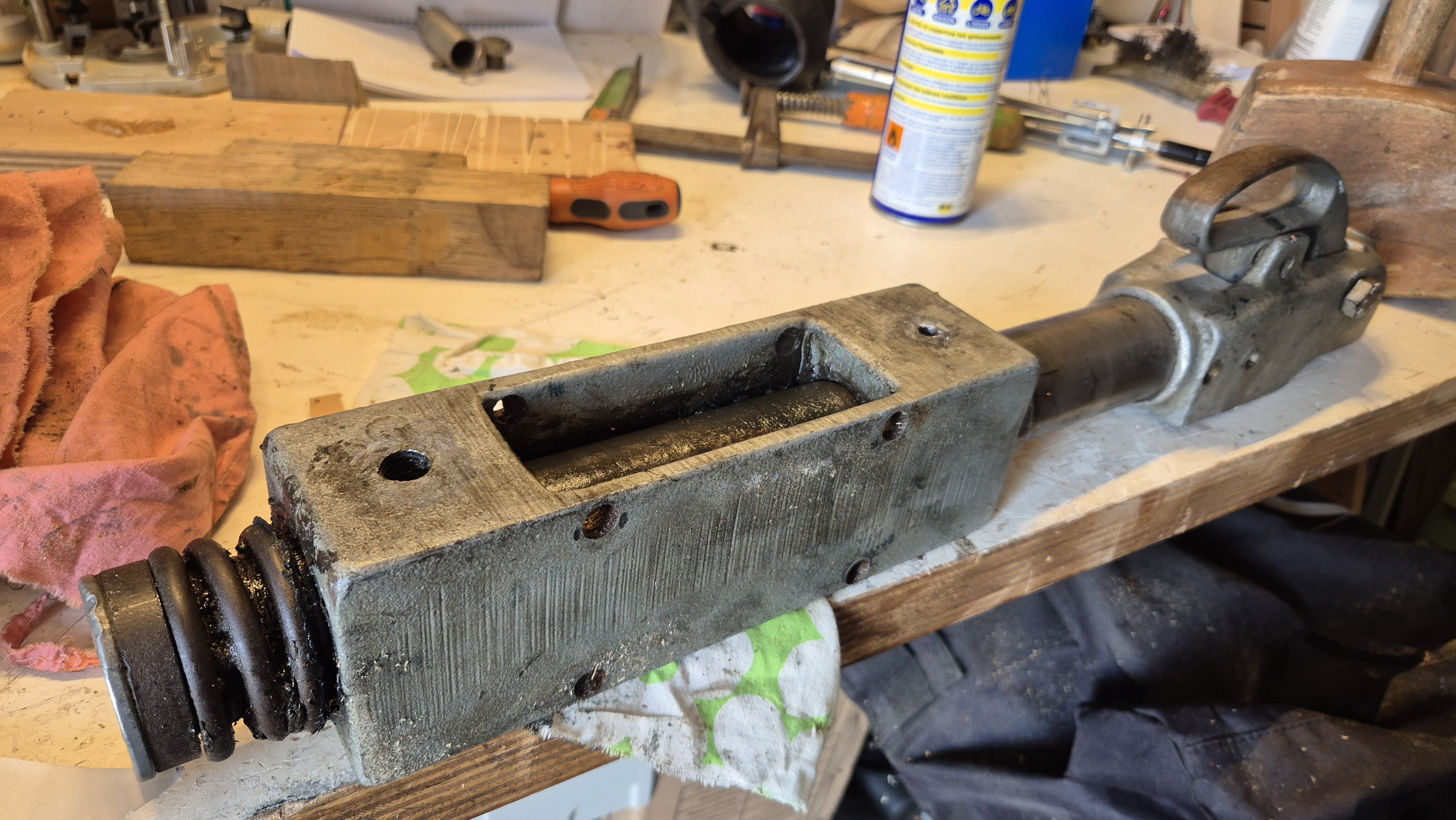 - de démonter entièrement le timon ( il y avait même un axe embouti mais qui n'a rien changé).