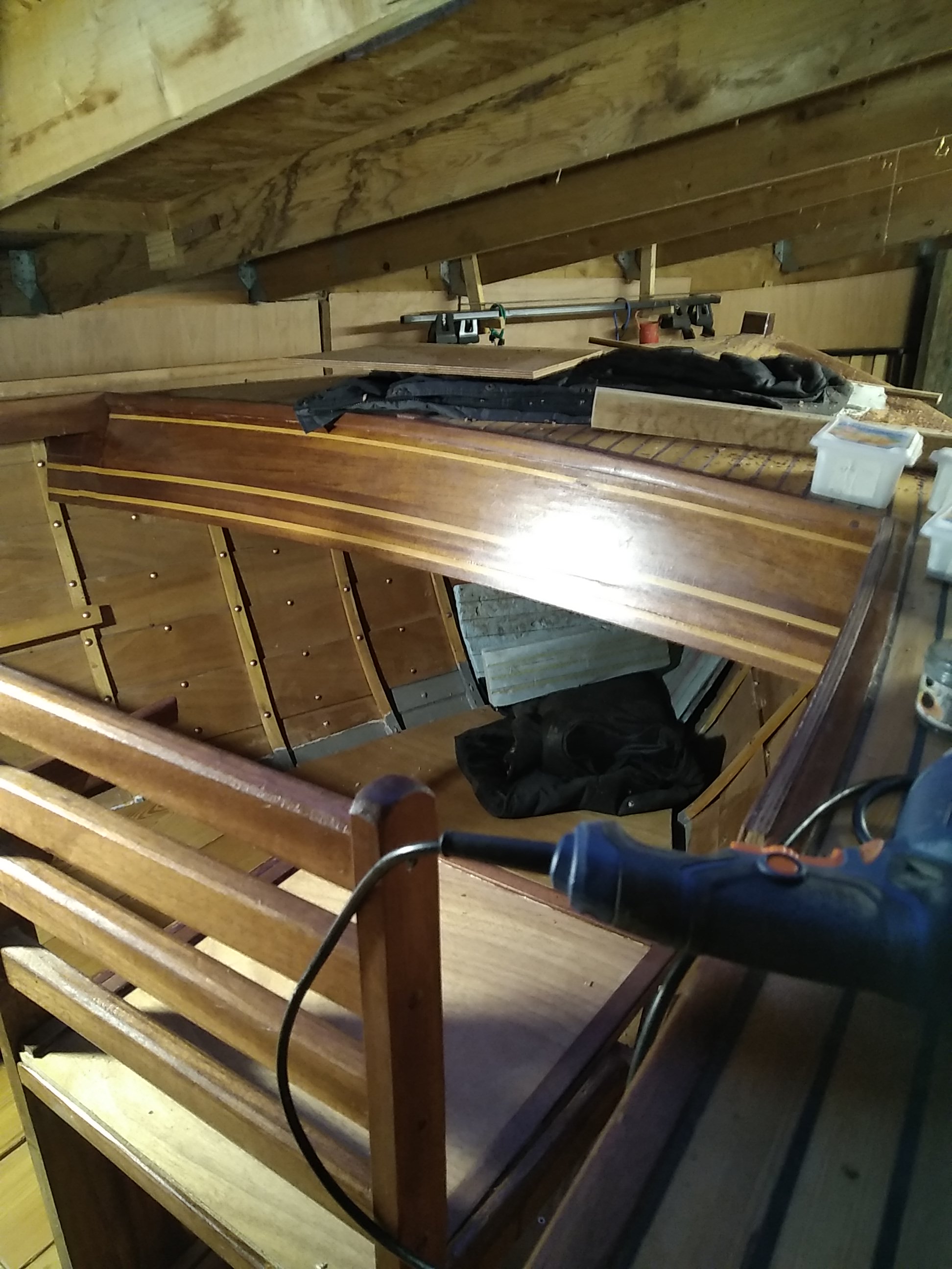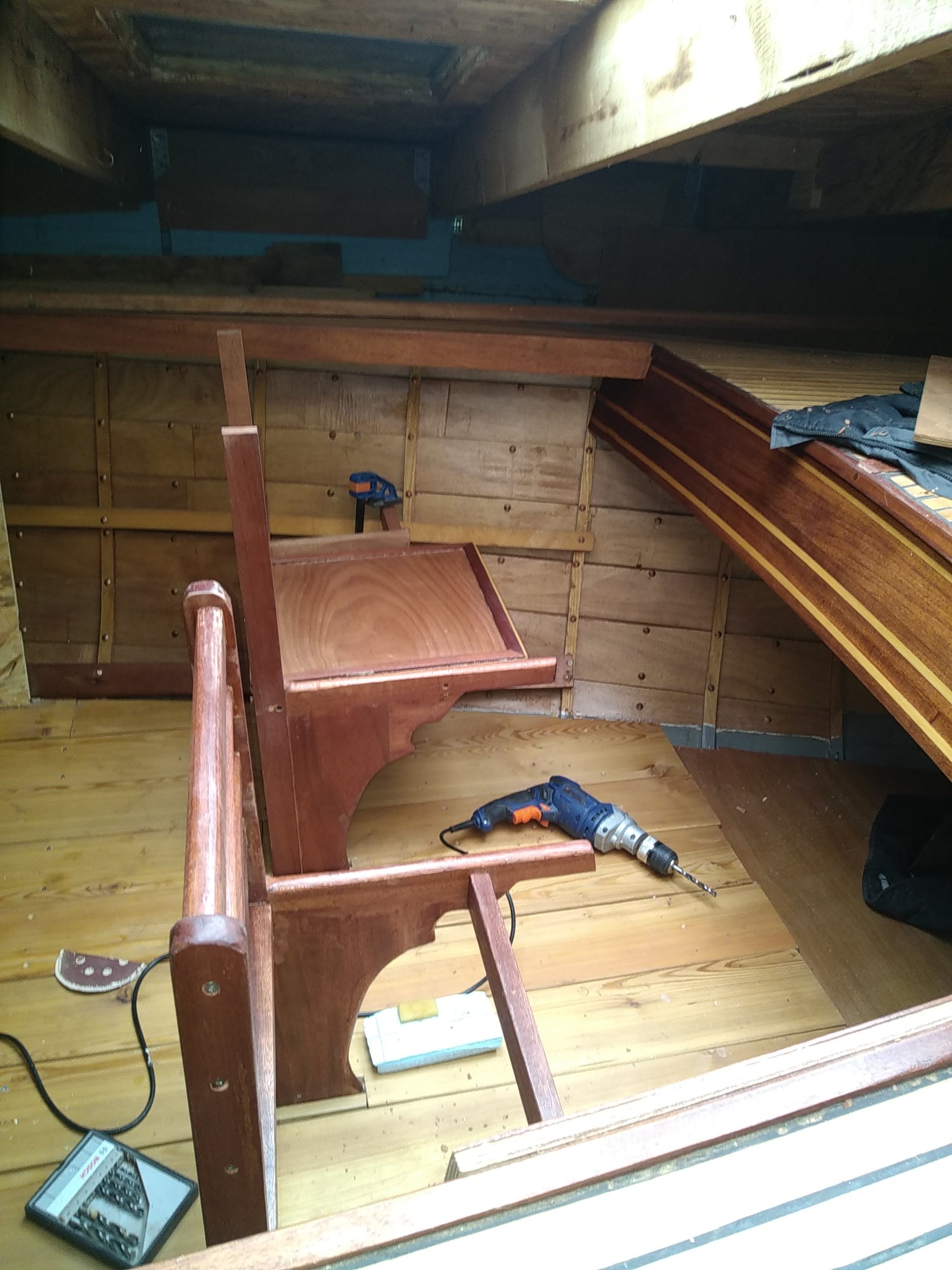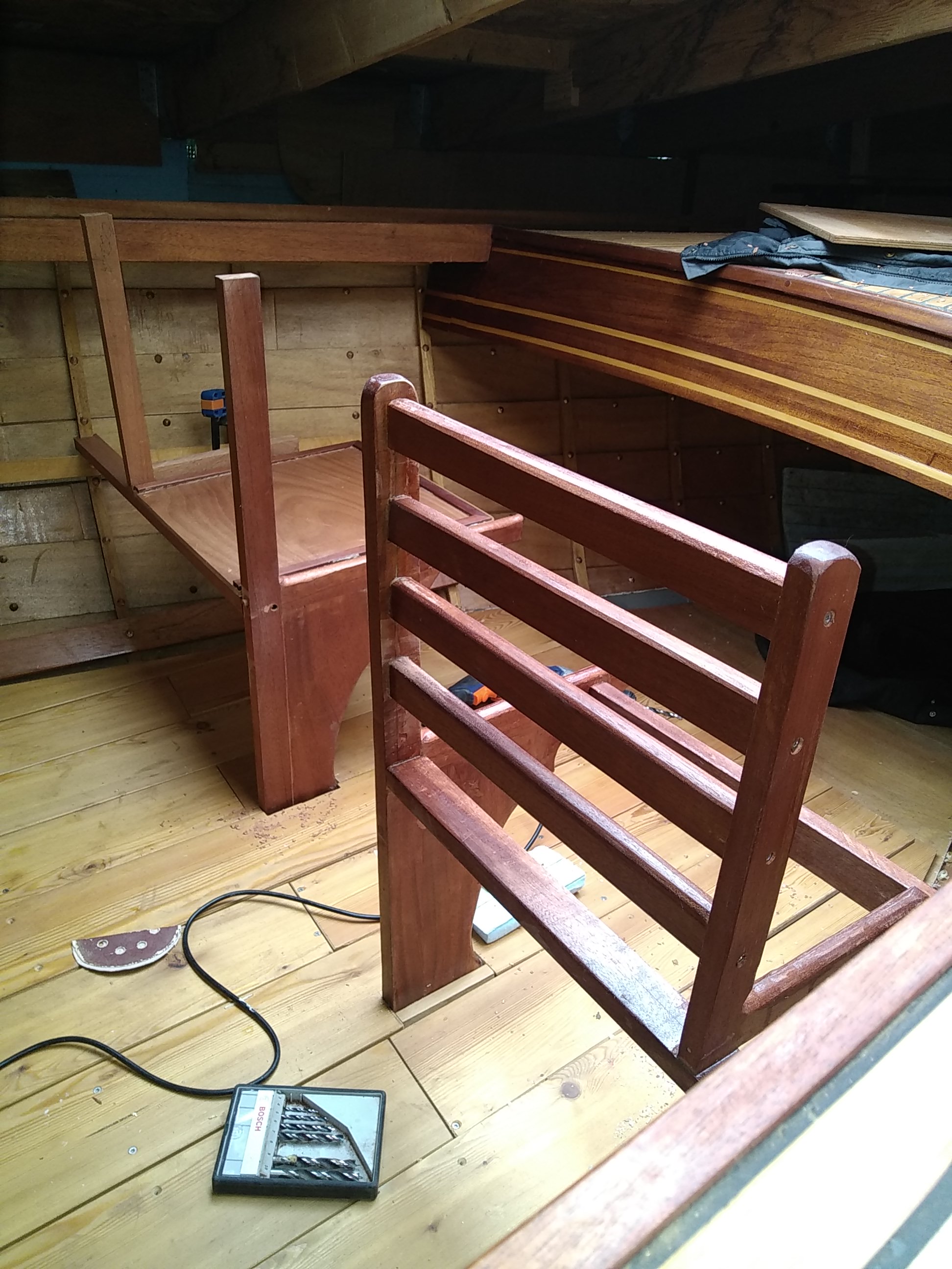en fait j'ai suivi ton conseil avant l'heure en effet le siège de tribord est fixé dans des cales posées sur la serre de banc l'encoche est là pour conserver le niveau et pour le siège de babord j'ai pratiqué une encoche dans la barre du siège puis posée sur le banc de serre.to a écrit : 11 mars 2023 07:52 J'aurai fait une encoche dans la barre du banc plutôt que dans la lisse, ça aurait bloqué le banc latéralement sans affaiblir la lisse. Mais c'est trop tard![]()