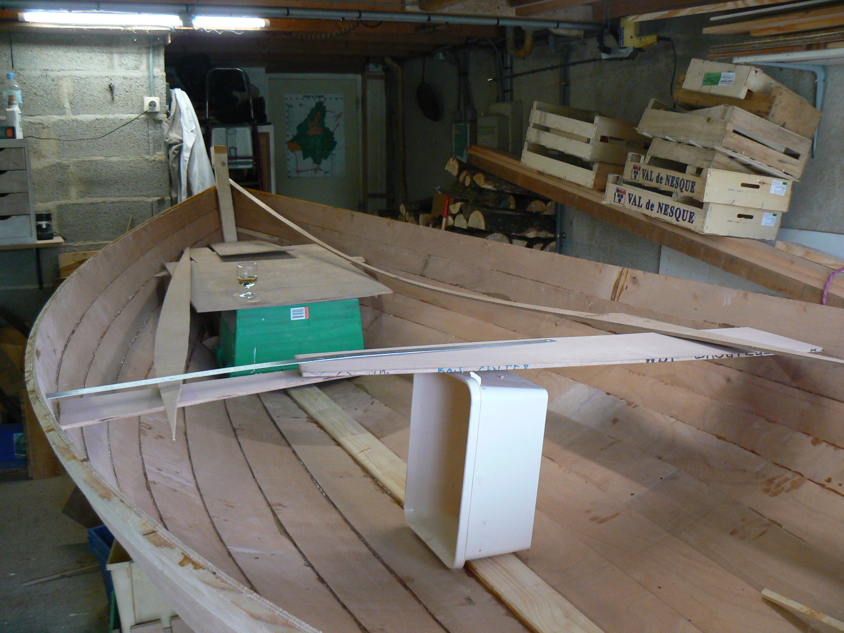 Alors.... la "bête" est complétement bordée.... et on pas (encore) une p'tite photo du retournement...voire de l'étuve a membrures.... je piaffe :smt033
