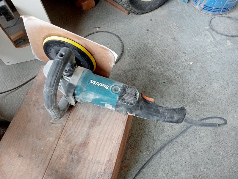 A la main c'est fatiguant, alors j'ai fait un essai avec une ponceuse-polisseuse "adaptée" selon des infos du web