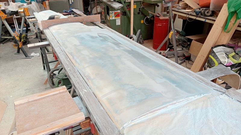 Une couche d'imprégnation aurait suffi, mais je suis trop inquiet sur les creux et bosses, alors je déglace et passe une deuxième couche bien lissée, pour voir les defauts, j'ai hâte.