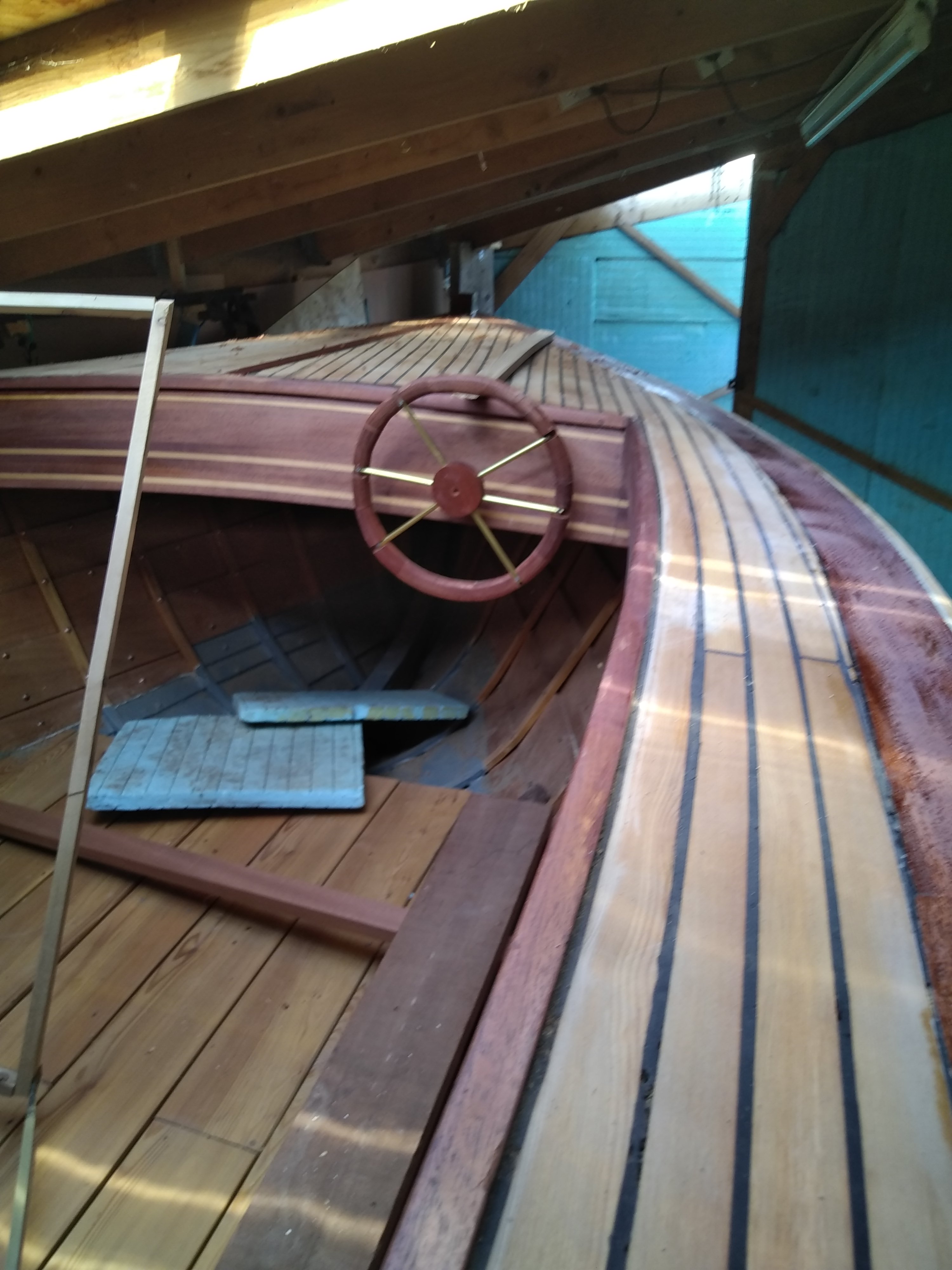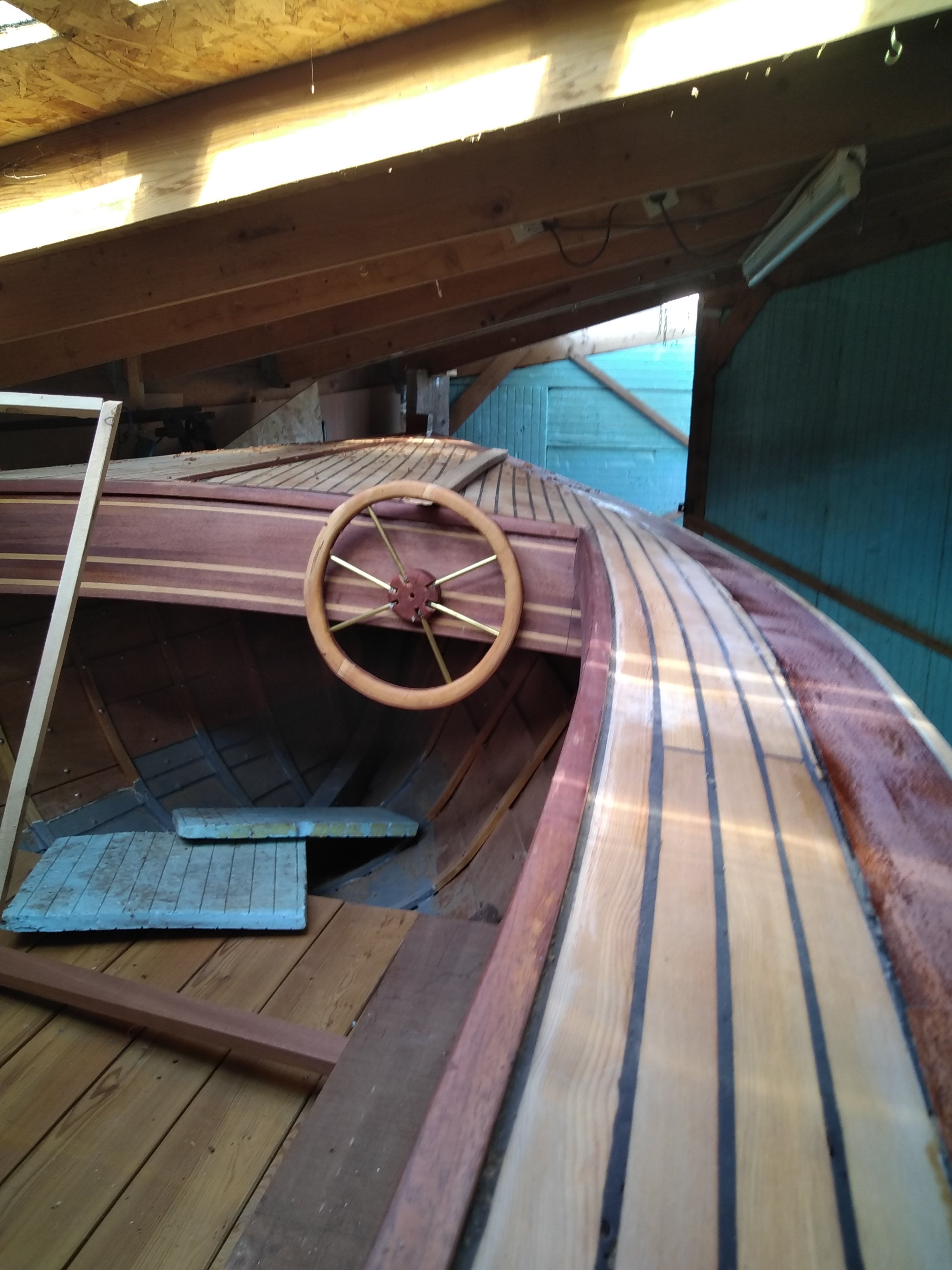 Ça ressemble bien à un volant ! C'est vrai qu'on parle de canot automobile, y aura-t-il aussi une pédale d'accélérateur voire une pédale de frein ?
