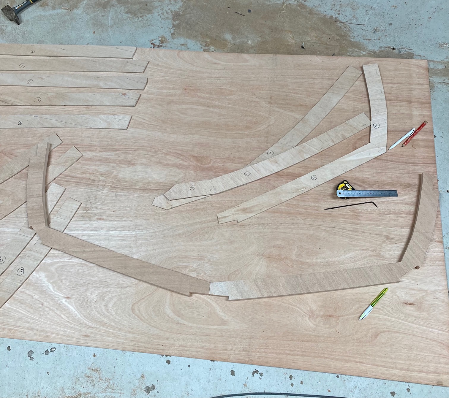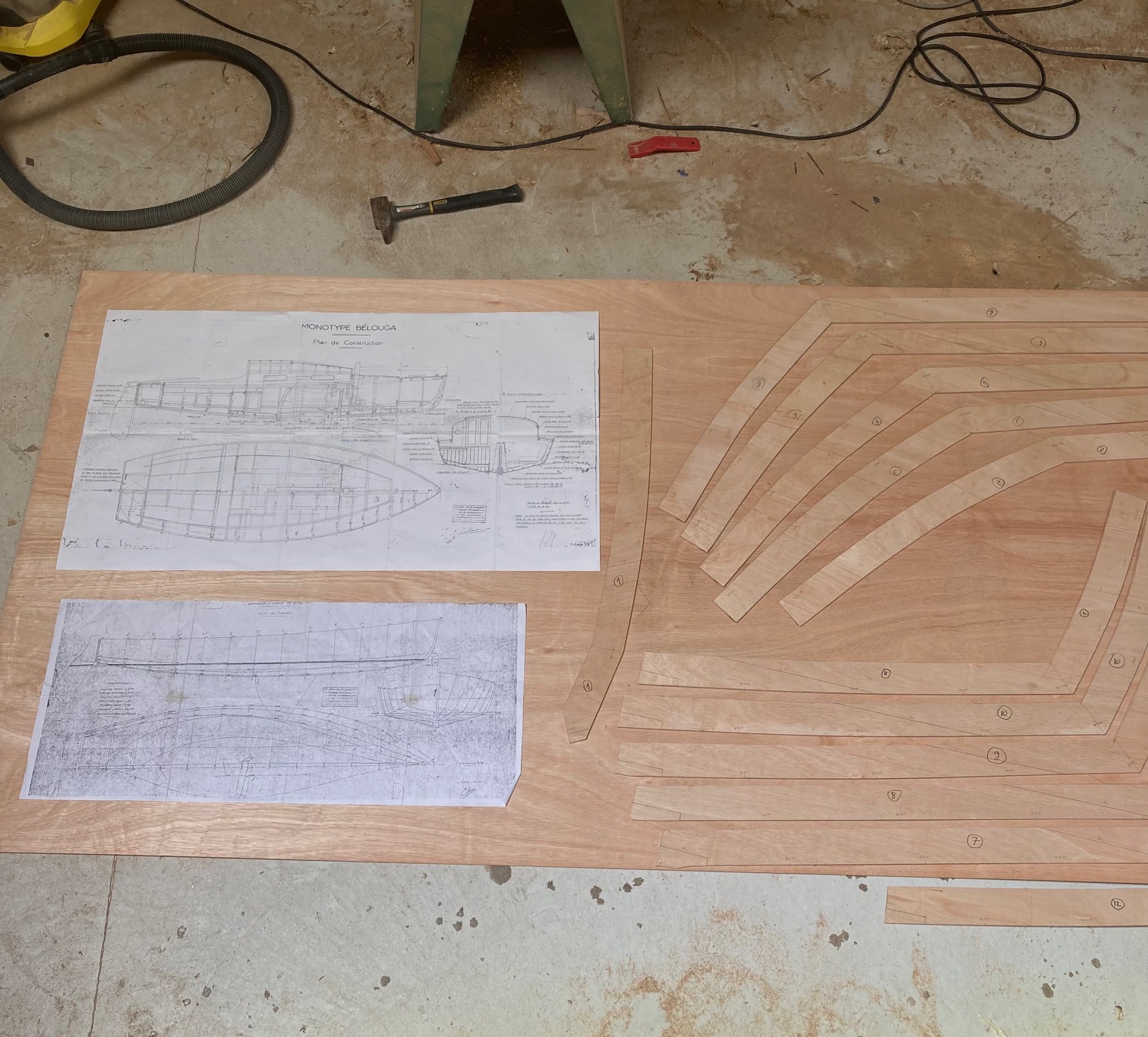 Après déchiffrage du plan de forme difficilement lisible, j'ai réalisé les gabarits de couple et ai découpé le premier (le 12).