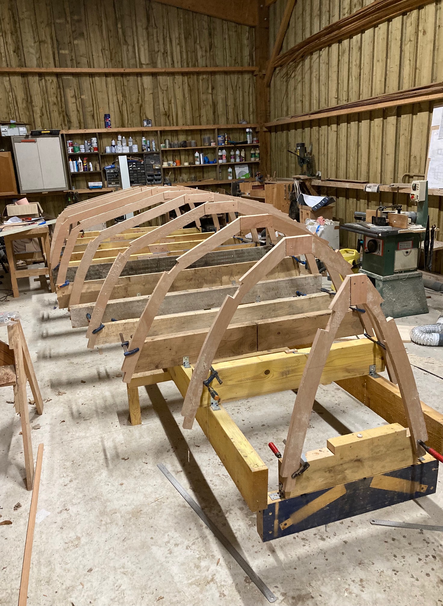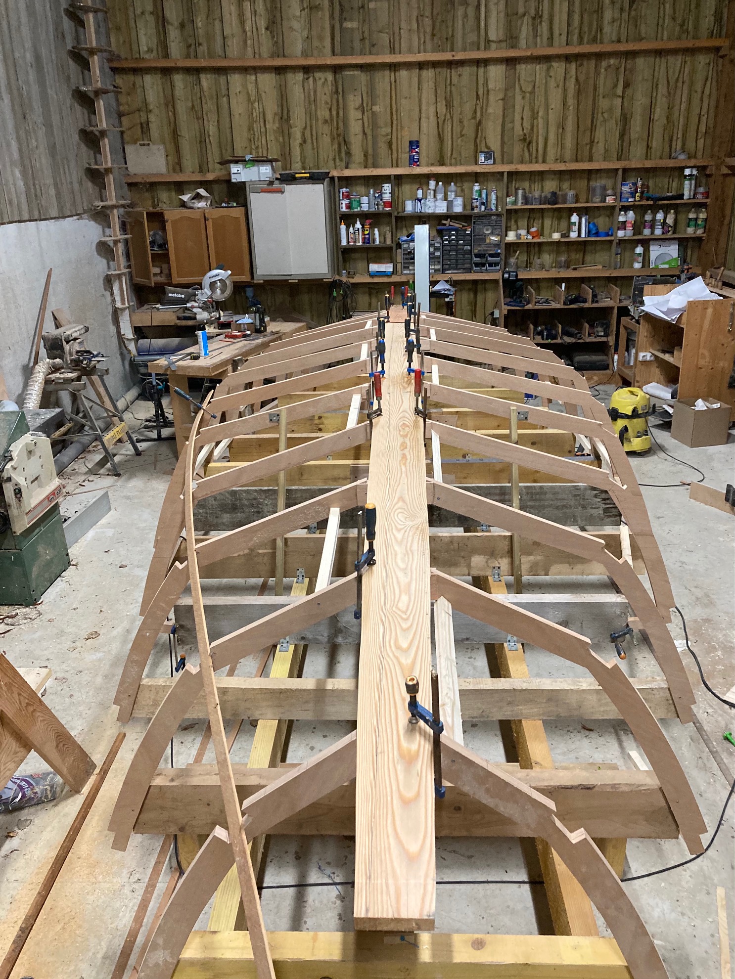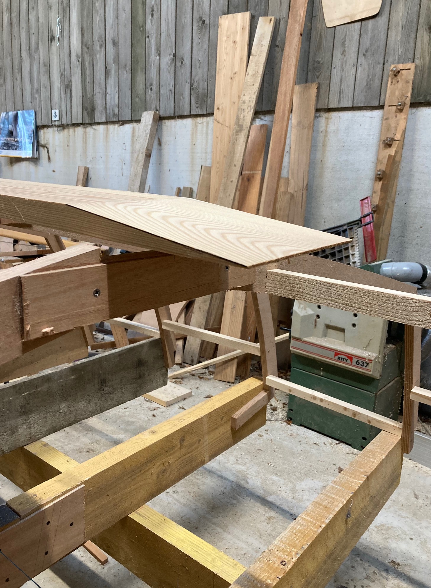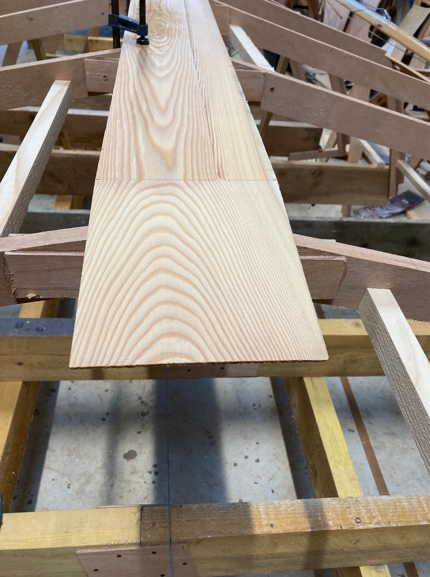 Pose de la quille aujourd'hui. A ma grande surprise une large de 170mm sur 28mm d’épaisseur se cintre sans problèmes! je ne pensais pas...