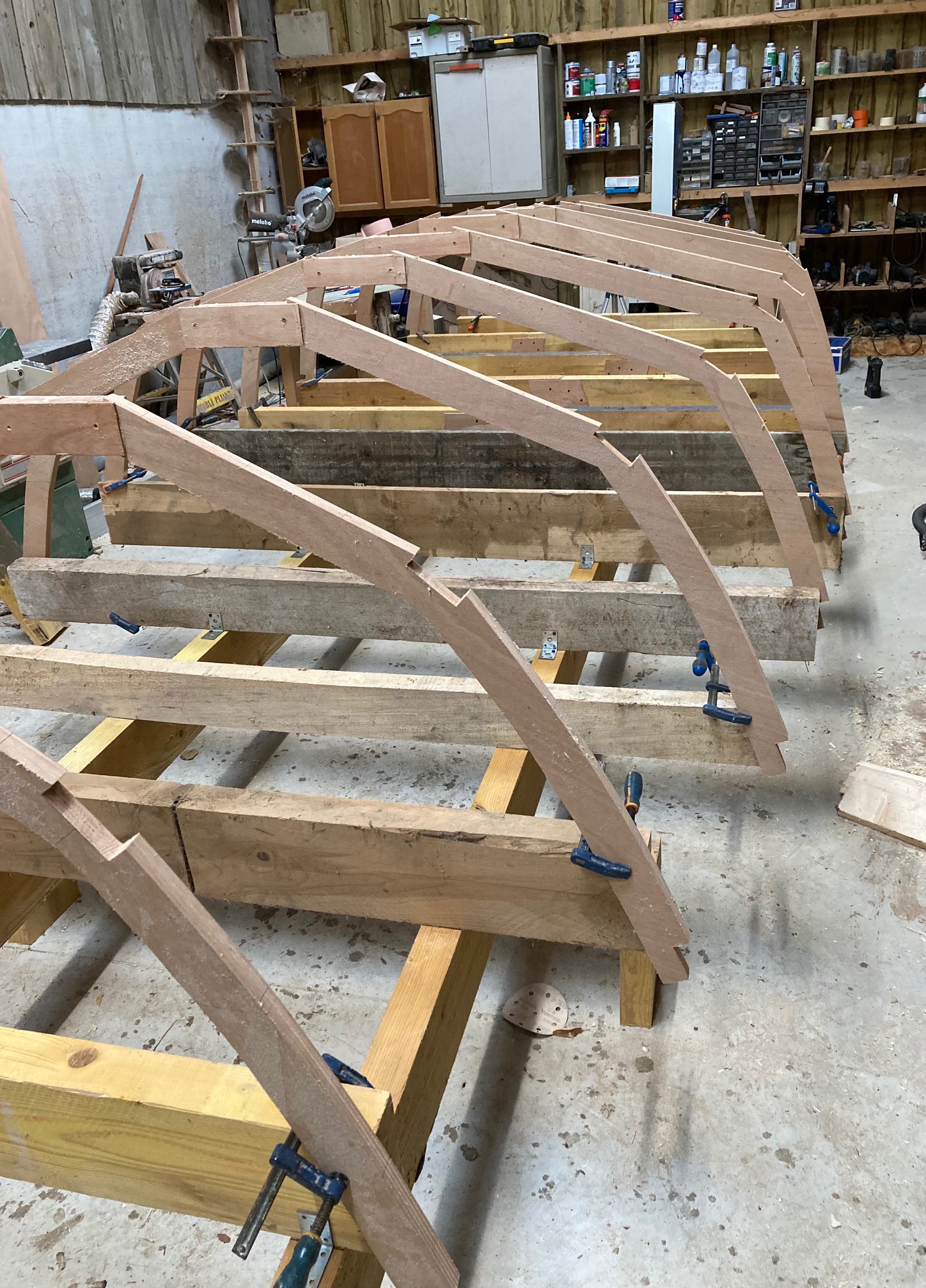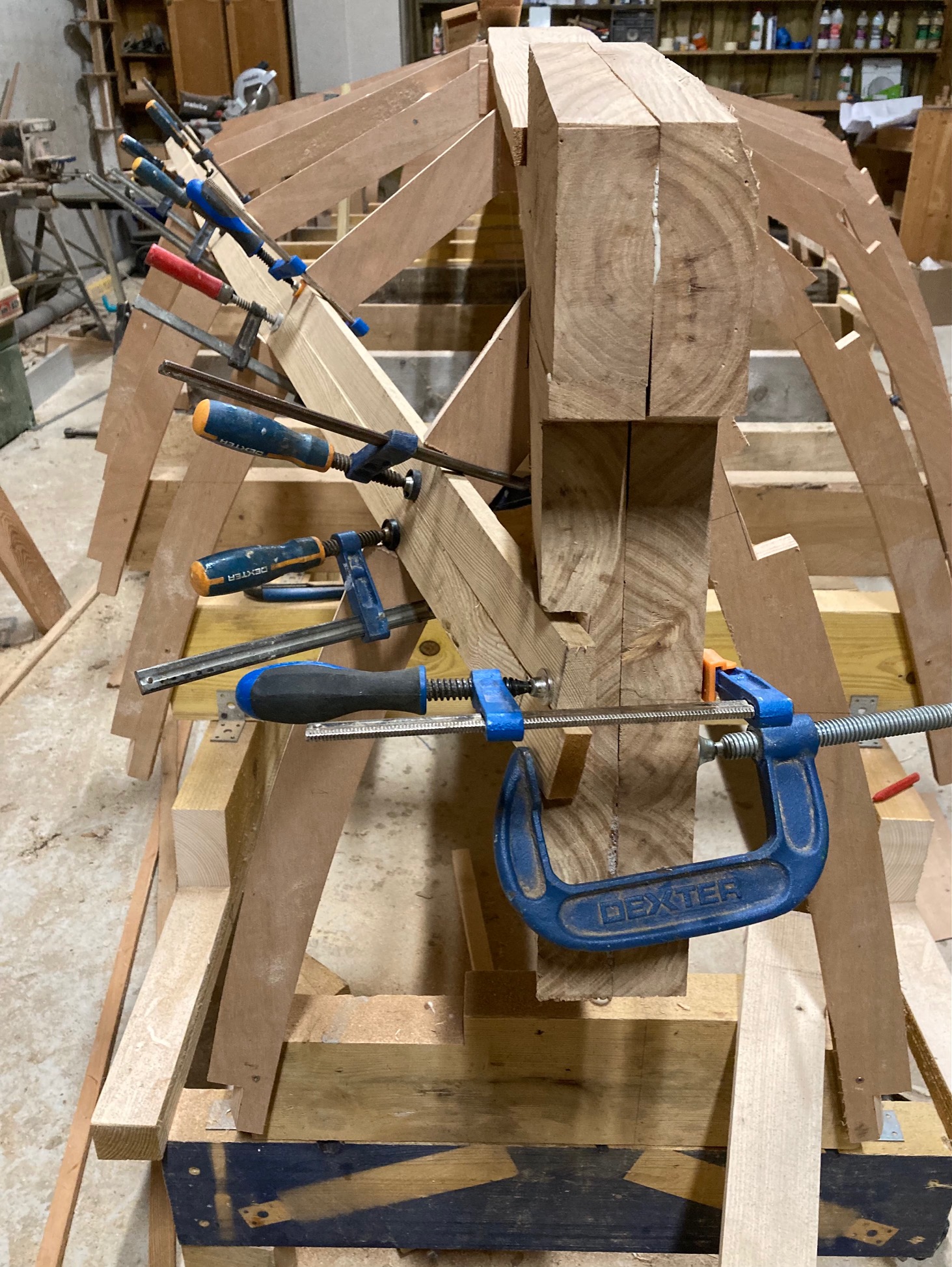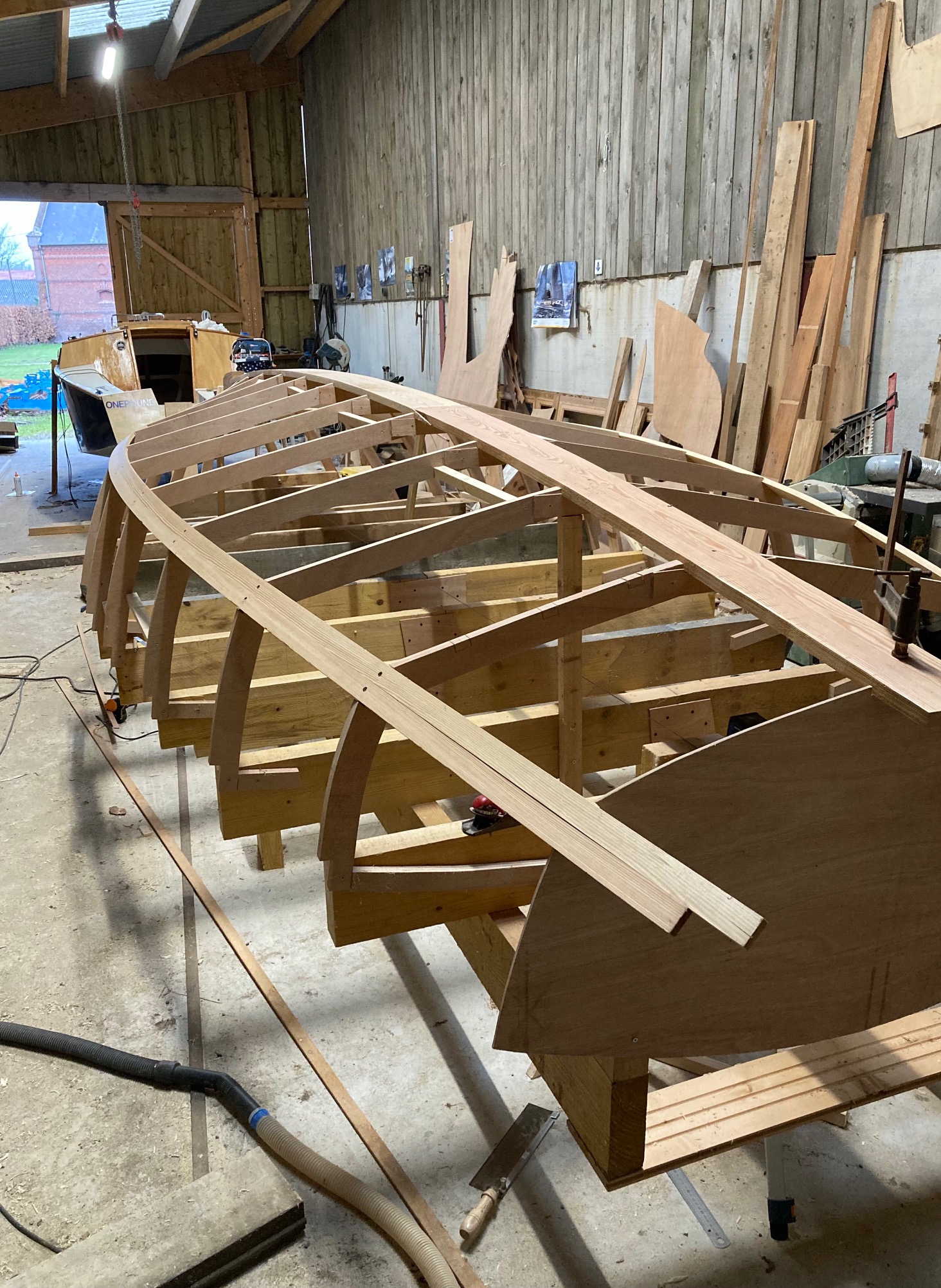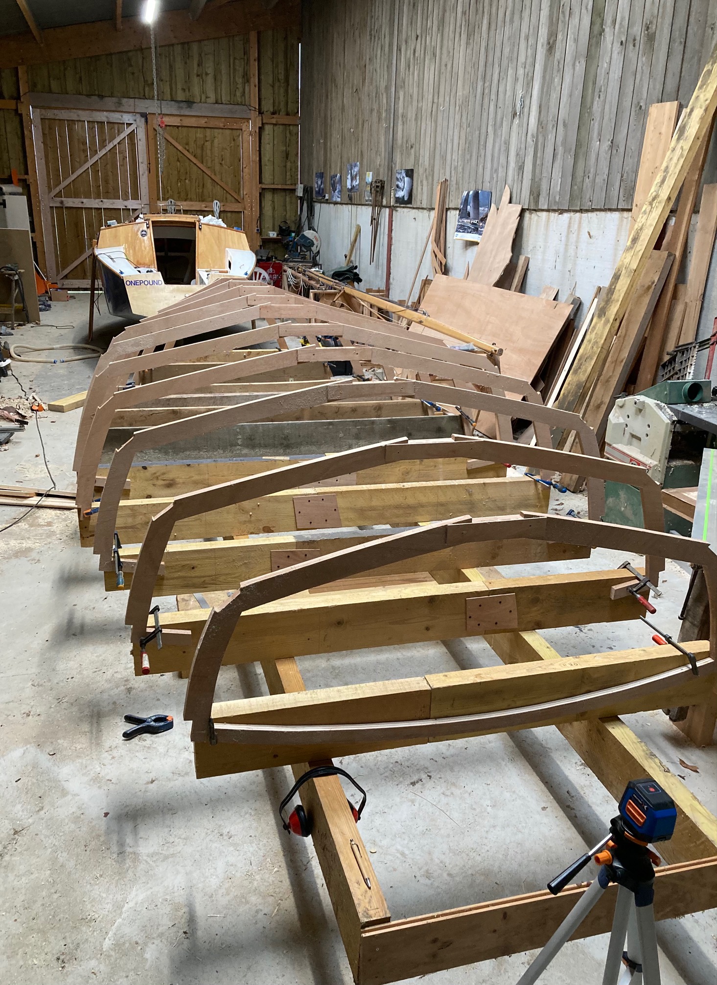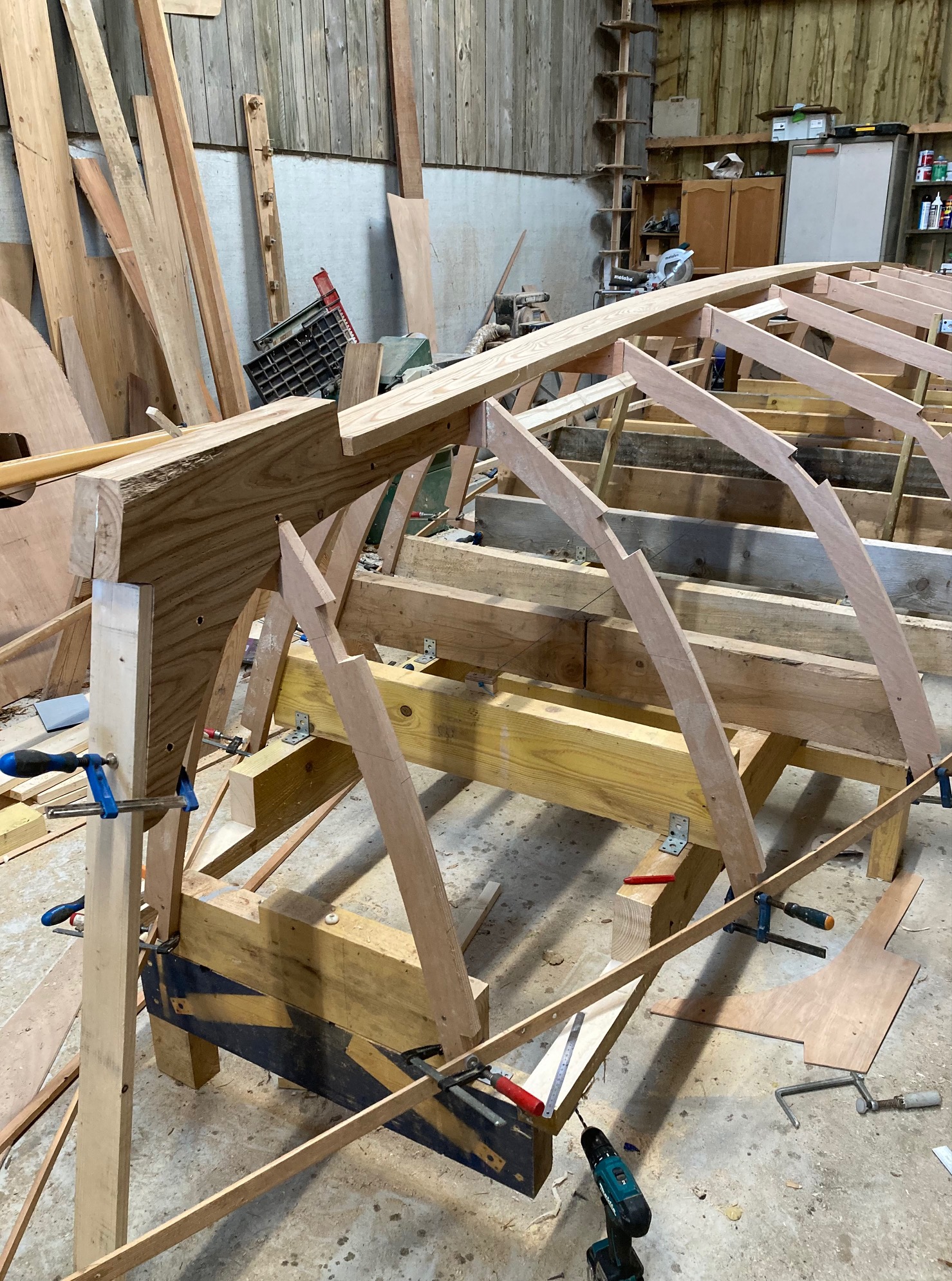 Pose de la quille aujourd'hui. A ma grande surprise une large de 170mm sur 28mm d’épaisseur se cintre sans problèmes! je ne pensais pas...