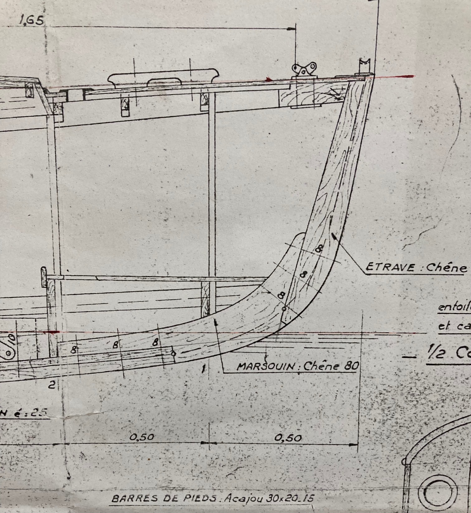 Oui, j'ai respecté les cotes du plan: 60x22. Au niveau du bouchain, Cornu parle du quille de bouchain en 80x40 donc la légèreté est renforcée...